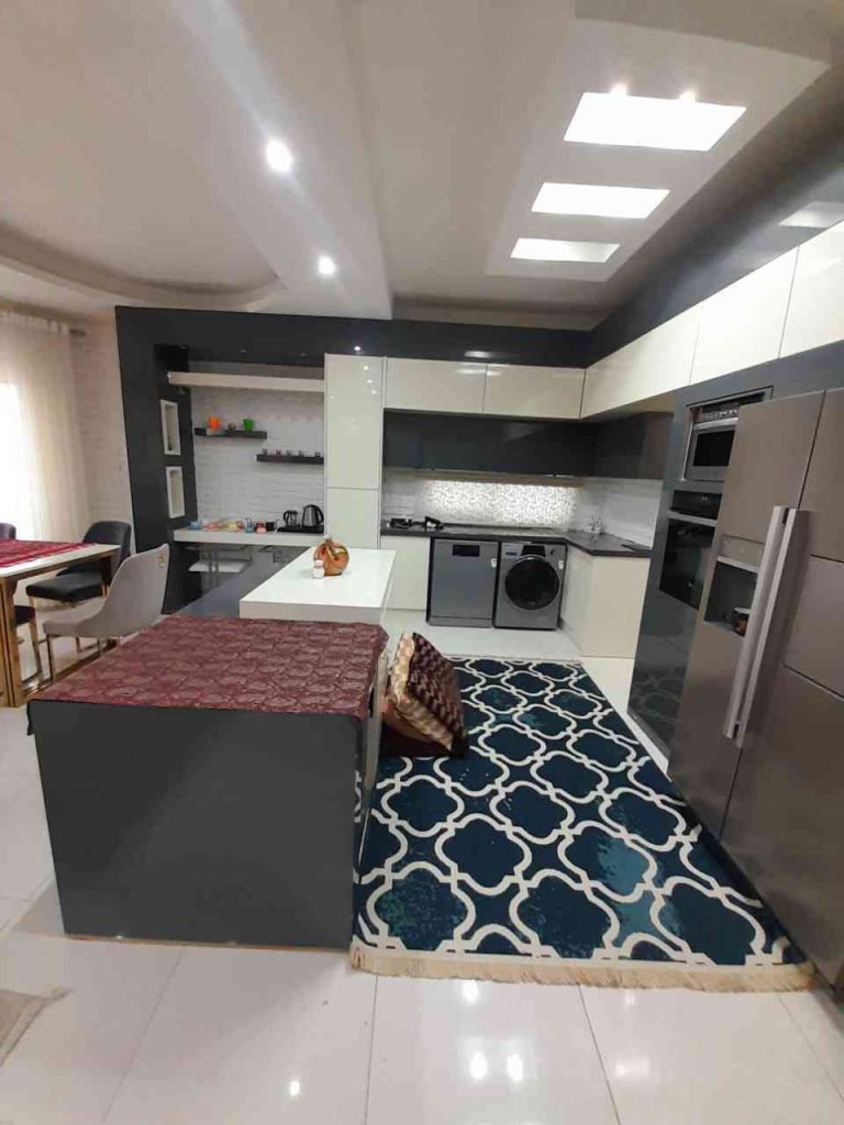 فر برقی و ماکروفر مارک برند، کابینت AGT اصل ترک با مارک، دو عدد لوستر زیبا، پارکینگ اختصاصی دستگاه ذخیره برق پارکینگ و آسانسور، گرمایش شوفاژ، پکیج.