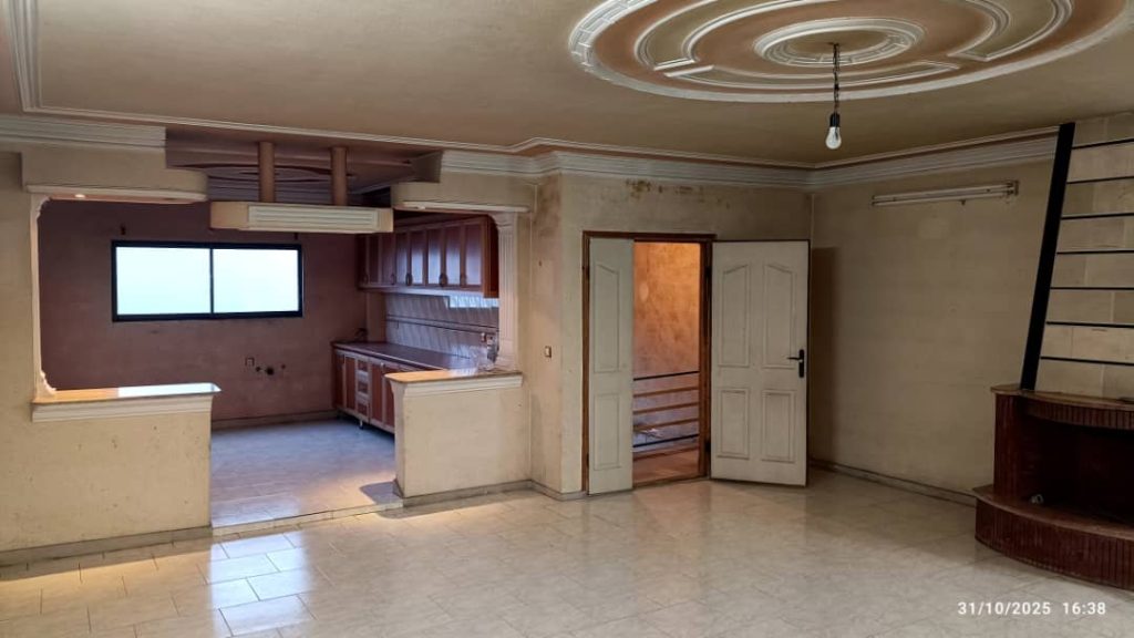 ۱۲۰ متر مسکونی با پارکینگ، به همراه 150 متر باغ پشت ساختمان، سالن بزرگ با تراس رو به خیابان اصلی.