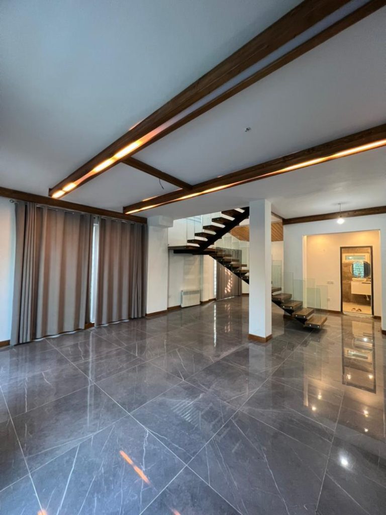 ویلا در زمینی به مساحت 300 مترمربع و بنای 200 مترمربع به صورت دوبلکس احداث گردید.